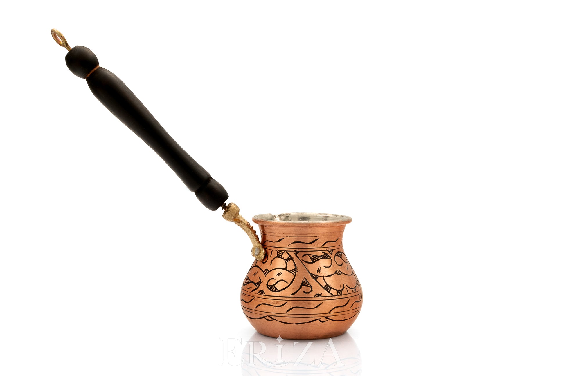 Gaziantep Tarzı El Yapımı Oyma İşlemeli Kalaylı Bakır Cezve